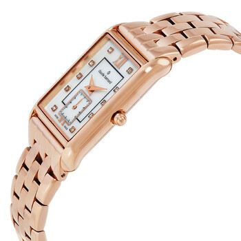 Stainless steel case with a stainless steel bracelet. Fixed bezel. Mother of pearl dial with rose gold-tone hands and crystals hour markers. Dial Type: Analog. One- small seconds subdials. Quartz movement. Scratch resistant sapphire crystal. Pull / push crown. Solid case back. Rectangle case shape. Case size: 30 x 27 mm. Water resistant at 30 meters / 100 feet. Functions: hour, minute, second. Dress watch style. Watch label: Swiss Made. Claude Bernard Crystal Ladies Watch 23097 37RM NAPR.