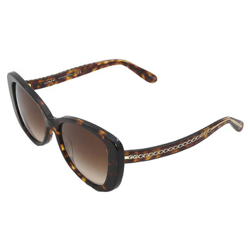 Coach Sunglasses. Series number: HC8322. Color code: 51203B. Shape: Butterfly. Lens Width: 54 mm. Lens Bridge: 17 mm. Arm Length: 140 mm. 100% UV protection. Frame Material: Plastic. Frame Color: Dark Tortoise. Lenses Type: Brown Gradient. Rim Style: Full-Rim. UPC/EAN code: 725125371599. Coach Brown Gradient Butterfly Ladies Sunglasses HC8322 51203B 54.