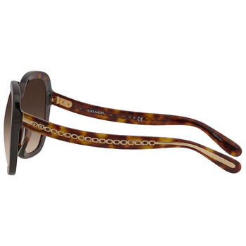 Coach Sunglasses. Series number: HC8323U. Color code: 51203B. Shape: Square. Lens Width: 56 mm. Lens Bridge: 17 mm. Arm Length: 140 mm. 100% UV protection. Frame Material: Plastic. Frame Color: Dark Tortoise. Lenses Type: Brown Gradient. Rim Style: Full-Rim. UPC/EAN code: 725125371308. Coach Brown Gradient Square Ladies Sunglasses HC8323U 51203B 56.