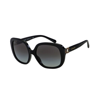 Coach Sunglasses. Series number: HC8292. Color code: 50028G. Shape: Square. Lens Width: 56 mm. Lens Bridge: 18 mm. Arm Length: 140 mm. 100% UV protection. Frame Material: Plastic. Frame Color: Black. Lenses Type: Grey Gradient. Rim Style: Full-Rim. UPC/EAN code: 725125143059. Coach Grey Gradient Square Ladies Sunglasses HC8292 50028G 56.
