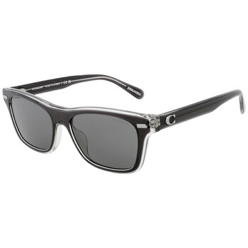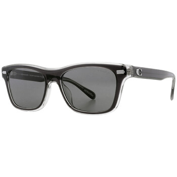 Coach Sunglasses. Series number: HC8371U. Color code: 574587. Shape: Rectangular. Lens Width: 54 mm. Lens Bridge: 17 mm. Arm Length: 145 mm. 100% UV protection. Non-Polarized. Frame Material: Plastic. Frame Color: Black/Transparent Grey. Lenses Type: Grey. Rim Style: Full-Rim. UPC/EAN code: 725125393904. Coach Grey Rectangular Men's Sunglasses HC8371U 574587 54.