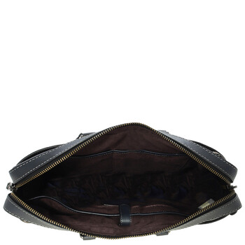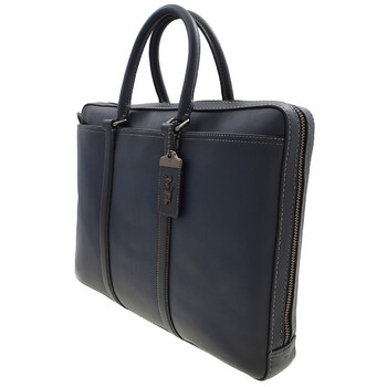 Coach Men's Briefcase. SKU: 55565 JIBHP. Color: Blue. Size: 11.7" x 15.7" x 2.2". Coach Metropolitan Slim Leather Briefcase. This glovetanned leather briefcase features a fabric lining, dual handles with a 4.25" drop, and a detachable nylon strap with a 25" drop for shoulder or crossbody wear. It includes an inside zip pocket, snap pocket, cell phone pocket, and multifunction pocket, along with a zip-around two-way closure. The interior also has a sleeve with a secure tab for a 15" laptop, while two exterior slip pockets with magnetic snap closures provide additional storage. Material: Leather.