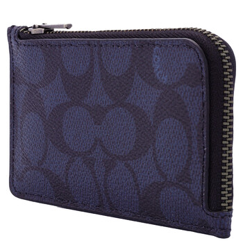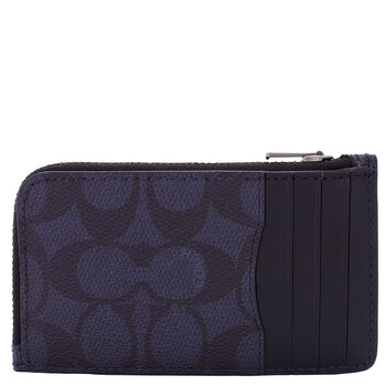 Coach Men's Card Case. SKU: 68975 MID. Color: Midnight. Size: OneSize. Coach Midnight L-zip Card Case In Signature Canvas. Crafted from refined calf leather and embossed with the brand's Signature. Featuring four card slots and a zip compartment. Dimensions 5" L x 2 3/4" H.