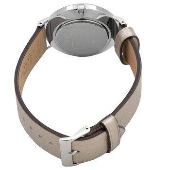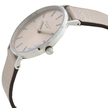 Silver-tone stainless steel case with a champagne metallic leather strap. Fixed silver-tone stainless steel bezel. Champagne dial with silver-tone hands and index hour markers. Dial Type: Analog. Quartz movement. Scratch resistant mineral crystal. Pull / push crown. Solid case back. Round case shape, case size: 36 mm. Buckle clasp. Water resistant at 30 meters / 100 feet. Functions: hour, minute. Perry Series. Casual watch style. Coach Perry Quartz Champagne Dial Ladies Watch 14503853.