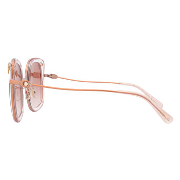 Coach Sunglasses. Series number: HC7101B. Color code: 933113. Shape: Square. Lens Width: 53 mm. Lens Height: 23 mm. Lens Bridge: 140 mm. 100% UV protection. Non-Polarized. Frame Material: Metal. Frame Color: Rose Gold/Transparent Pink. Lenses Type: Pink Gradient. Rim Style: Full-Rim. UPC/EAN code: 725125013437. Coach Pink Gradient Square Ladies Sunglasses HC7101B 933113 53.