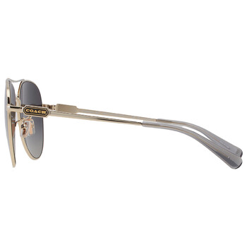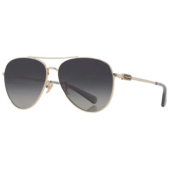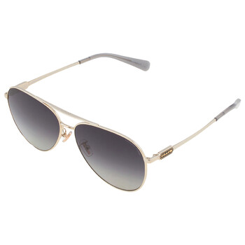 Coach Sunglasses. Series number: HC7140. Color code: 9005T3. Shape: Pilot. Lens Width: 61 mm. Lens Bridge: 14 mm. Arm Length: 140 mm. 100% UV protection. Polarized. Frame Material: Metal. Frame Color: Shiny Light Gold. Lenses Type: Polarized Grey Gradient. Rim Style: Full-Rim. UPC/EAN code: 725125387613. Coach Polarized Grey Gradient Pilot Ladies Sunglasses HC7140 9005T3 61.