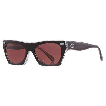 Coach Sunglasses. Series number: HC8389U. Color code: 572875. Shape: Cat Eye. Lens Width: 52 mm. Lens Bridge: 18 mm. Arm Length: 145 mm. 100% UV protection. Non-Polarized. Frame Material: Plastic. Frame Color: Black/Clear. Lenses Type: Violet. Rim Style: Full-Rim. UPC/EAN code: 725125400336. Coach Violet Cat Eye Ladies Sunglasses HC8389U 572875 52.