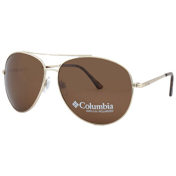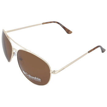Columbia Sunglasses. Series Canyons Bend. Series number: C104SP. Color code: 710. Shape: Pilot. Lens Width: 60 mm. Lens Bridge: 14 mm. Arm Length: 145 mm. 100% UV protection. Non-Polarized. Frame Material: Metal. Frame Color: Shiny Gold. Lenses Type: Brown. Rim Style: Full-Rim. UPC/EAN code: 886895300056. Columbia Canyons Bend Brown Pilot Unisex Sunglasses C104SP 710 60.