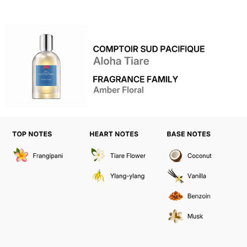 Experience the tropical essence of paradise with Comptoir Sud Pacifique Aloha Tiare Eau de Toilette. Launched in 2010, this exquisite ladies' fragrance captures the warm, sun-kissed beauty of an island getaway. As a part of the Amber Floral family, Aloha Tiare blends lush florals with creamy, exotic notes, creating a sensual and uplifting scent.