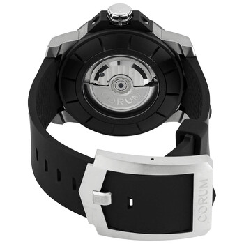 Titanium case with a rubber strap. Fixed titanium bezel. Silver dial with nautical flag hour markers. Arabic numeral minute markers (at 5 minute intervals). Minute markers around the outer rim. Dial Type: Analog. Luminescent hands and markers. Day of the week and date display at the 3 o'clock position. One subdial displaying: small second. Corum Calibre CO 690 automatic movement. Scratch resistant sapphire crystal. Protected crown. Solid case back. Dodecagon case shape, case size: 48 mm, case thickness: 17 mm. Band width: 24 mm. Tang clasp. Water resistant at 300 meters / 1000 feet. Functions: date, day, hour, minute, small second. Admirals Cup Challenger Series. Sport watch style. Watch label: Swiss Made. Corum Admirals Cup Challenger Automatic Silver Dial Men's Watch A690/04318.