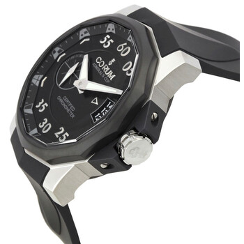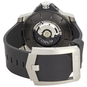 Titanium case with a black rubber bracelet. Fixed titanium bezel. Black dial with luminous hands and nautical flag hour markers. Minute markers around the outer rim. Luminescent hands. Date displays at the 3 o'clock position. Small seconds sub-dial. Automatic movement. Scratch resistant sapphire crystal. Case diameter: 47 mm. Case thickness: 19 mm. Tang clasp. Water resistant at 300 meters/ 1000 feet. Functions: hours, minutes, small seconds, date. Corum Admirals Cup Titanium Automatic Men's Watch 947951940371-AN14.