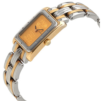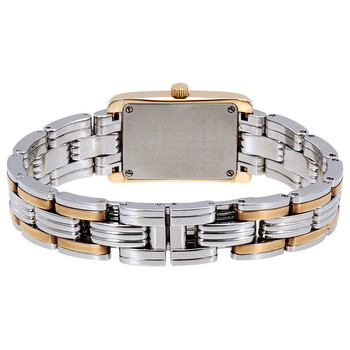 Stainless steel and 18k rose gold case with a stainless steel and 18k rose gold bracelet. Fixed bezel. 18k rose gold dial with black hands. Dial Type: Analog. Quartz movement. Rectangle case shape. Case size: 34 mm. Hidden folding clasp. Water resistant at 30 meters / 100 feet. Functions: hour, minute. Dress watch style. Corum Ingot Bar 18K Rose Gold and Stainless Steel Ladies Watch.
