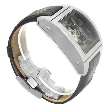 Grey titanium case with a black genuine leather strap. Fixed grey titanium bezel. Transparent dial with silver-tone hands. Dial Type: Analog. One subdial displaying: tourbillon. Corum Calibre CO 022 hand wind movement with a 72-hour power reserve. Scratch resistant sapphire crystal. Screw down crown. Transparent see through case back. Tonneau case shape, case size: 41.5×42.5 mm. Deployment with push button release clasp. Water resistant at 50 meters / 165 feet. Functions: tourbillon, hour, minute. Additional Info: limited to 50 pieces. Ti-bridge Series. Dress watch style. Watch label: Swiss Made. CORUM Ti-Bridge Tourbillon Hand Wind Men's Watch 022.700.04-0F01 0000.
