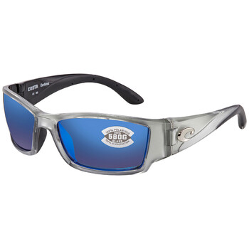 Costa Del Mar Sunglasses. Series CORBINA. Series number: CB 18. Color code: OBMGLP. Shape: Wrap. Lens Width: 61.3 mm. Lens Height: 38.8 mm. Lens Bridge: 18 mm. Arm Length: 125 mm. 100% UV protection. Polarized. Frame Material: Bio Resin. Frame Color: Silver. Lenses Type: Blue Mirror Polarized Glass. Rim Style: Full-Rim. UPC/EAN code: 097963464697. Costa Del Mar CORBINA Blue Mirror Polarized Glass Men's Sunglasses CB 18 OBMGLP 61.