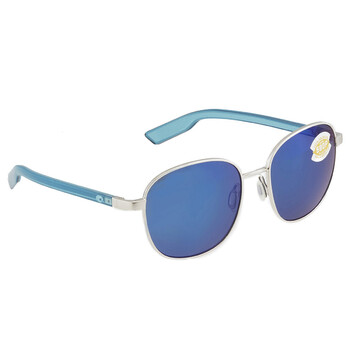 Costa Del Mar Sunglasses. Series Egret. Series number: EGR 299. Color code: OBMP. Shape: Round. Lens Width: 55 mm. Lens Height: 50.3 mm. Lens Bridge: 18 mm. Arm Length: 133 mm. 100% UV protection. Polarized. Frame Material: Metal. Frame Color: Brushed Silver. Lenses Type: Blue Mirror Polarized Polycarbonate. Rim Style: Full-Rim. UPC/EAN code: 097963843997. Costa Del Mar Egret Blue Mirror Polarized Polycarbonate Unisex Sunglasses EGR 299 OBMP.