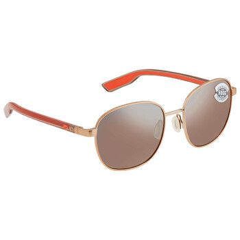 Costa Del Mar Sunglasses. Series EGRET. Series number: EGR 297. Color code: OSCGLP. Shape: Round. Lens Width: 55 mm. Lens Height: 50.3 mm. Lens Bridge: 18 mm. Arm Length: 133 mm. 100% UV protection. Polarized. Frame Material: Metal. Frame Color: Brushed Rose Gold. Lenses Type: Copper Silver Mirror Polarized Glass. Rim Style: Full-Rim. UPC/EAN code: 097963843928. Costa Del Mar EGRET Copper Silver Mirror Polarized Glass Unisex Sunglasses EGR 297 OSCGLP 55.