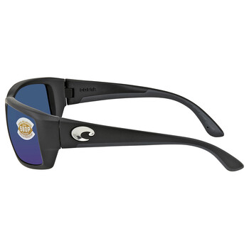 Costa Del Mar Sunglasses. Series Fantail. Series number: TF 11. Color code: OBMP. Size: 58.9. Shape: Rectangular. Lens Width: 58.9 mm. Lens Height: 38.7 mm. Lens Bridge: 17.5 mm. Arm Length: 120.2 mm. 100% UV Protection. Polarized. Frame Material: Plastic. Frame Color: Matte Black. Lenses Type: Blue Mirror Polarized Plastic. Rim Style: Full-Rim. UPC/EAN code: 097963517225. Costa Del Mar Fantail Blue Mirror Polarized Medium Fit Sunglasses TF 11 OBMP.