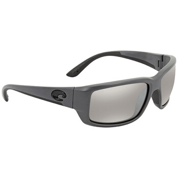 Costa Del Mar Sunglasses. Series FANTAIL. Series number: TF 98. Color code: OSCGLP. Shape: Rectangular. Lens Width: 59.2 mm. Lens Height: 38.8 mm. Lens Bridge: 14 mm. Arm Length: 127 mm. 100% UV protection. Polarized. Frame Material: Bio Resin. Frame Color: Matte Gray. Lenses Type: Copper Silver Mirror Polarized Glass. Rim Style: Full-Rim. UPC/EAN code: 097963554756. Costa Del Mar FANTAIL Copper Silver Mirror Polarized Glass Men's Sunglasses TF 98 OSCGLP 59.