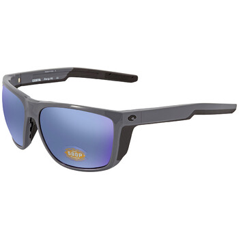 Costa Del Mar Sunglasses. Series Ferg XL. Series number: 6S9012. Color code: 901211. Shape: Rectangular. Lens Width: 61.8 mm. Lens Height: 48 mm. Lens Bridge: 16 mm. Arm Length: 130 mm. 100% UV protection. Polarized. Frame Material: Plastic. Frame Color: Shiny Grey. Lenses Type: Blue Mirror Polarized Polycarbonate. Rim Style: Full-Rim. UPC/EAN code: 097963874311. Costa Del Mar Ferg XL Blue Mirror Polarized Polycarbonate Men's Sunglasses 6S9012 901211 62.