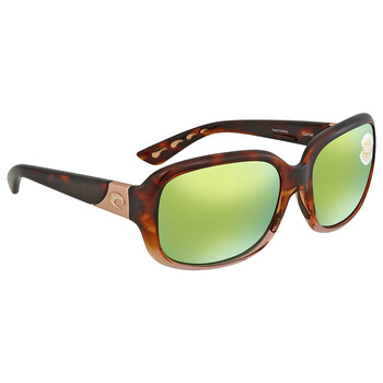 Costa Del Mar Sunglasses. Series GANNET. Series number: GNT 120. Color code: OGMP. Color: Green Mirror Polarized. Size: 57.9. Shape: Square. Lens Width: 58 mm. Lens Height: 44.4 mm. Lens Bridge: 17 mm. Arm Length: 135 mm. 100% UV Protection. Polarized. Frame Material: Bio Resin. Frame Color: Shiny Tortoise Fade. Lenses Type: Green Mirror Polarized Polycarbonate. Rim Style: Full-Rim. UPC/EAN code: 097963554879. Costa Del Mar GANNET Green Mirror Polarized Polycarbonate Ladies Sunglasses GNT 120 OGMP 58.