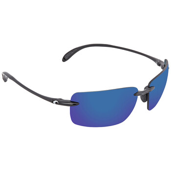 Costa Del Mar Sunglasses. Series GULF SHORE. Series number: GSH 11. Color code: OBMP. Shape: Rectangular. Lens Width: 66 mm. Lens Height: 40.7 mm. Lens Bridge: 15 mm. Arm Length: 125 mm. 100% UV Protection. Polarized. Frame Material: Bio Resin. Frame Color: Shiny Black. Lenses Type: Blue Mirror Polarized Polycarbonate. Rim Style: Rimless. UPC/EAN code: 097963554916. Costa Del Mar GULF SHORE Blue Mirror Polarized Polycarbonate Unisex Sunglasses GSH 11 OBMP 66.