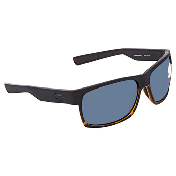 Costa Del Mar Sunglasses. Series Half Moon. Color code: OGP. Size: 59.6. Shape: Rectangular. Lens Width: 59.6 mm. Lens Bridge: 15.8 mm. Arm Length: 125 mm. 100% UV protection. Polarized. Frame Material: Plastic. Frame Color: Matte Black/Shiny Tortoise. Lenses Type: Gray Polarized Plastic. UPC/EAN code: 097963665193. Costa Del Mar Half Moon Gray Polarized Plastic Sunglasses HFM 181 OGP.