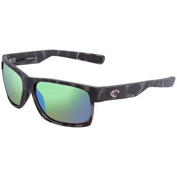Costa Del Mar Sunglasses. Series Half Moon. Series number: 6S9026. Color code: 902637. Shape: Rectangular. Lens Width: 60 mm. Lens Height: 41.3 mm. Lens Bridge: 14 mm. Arm Length: 125 mm. 100% UV protection. Polarized. Frame Material: Bio Resin. Frame Color: Tiger Shark. Lenses Type: Green Mirror Polarized Glass. Rim Style: Full-Rim. UPC/EAN code: 097963940573. Costa Del Mar Half Moon Green Mirror Polarized Glass Men's Sunglasses 6S9026 902637 60.