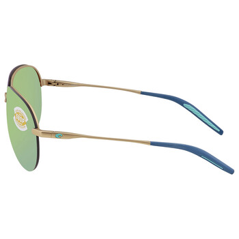 Costa Del Mar Sunglasses. Series Helo. Series number: HLO 243. Color code: OGMP. Shape: Pilot. Lens Width: 61 mm. Lens Height: 49.5 mm. Lens Bridge: 14 mm. Arm Length: 128 mm. 100% UV Protection. Polarized. Frame Material: Metal. Frame Color: Matte Champagne. Lenses Type: Green Mirror Polarized Polycarbonate. Rim Style: Semi-Rimless. UPC/EAN code: 097963809269. Costa Del Mar Helo Green Mirror Polarized Polycarbonate Unisex Sunglasses HLO 243 OGMP 61.