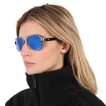 Costa Del Mar Sunglasses. Series LORETO. Series number: LR 64. Color code: OBMGLP. Size: 60.1. Shape: Pilot. Lens Width: 56 mm. Lens Height: 45.4 mm. Lens Bridge: 14 mm. Arm Length: 126 mm. 100% UV Protection. Polarized. Frame Material: Metal. Frame Color: Rose Gold, Tortoise. Lenses Type: Blue Mirror Polarized Glass. Rim Style: Full-Rim. UPC/EAN code: 097963526913. Costa Del Mar LORETO Blue Mirror Polarized Glass Ladies Sunglasses LR 64 OBMGLP 56.