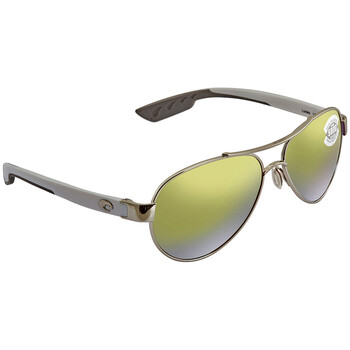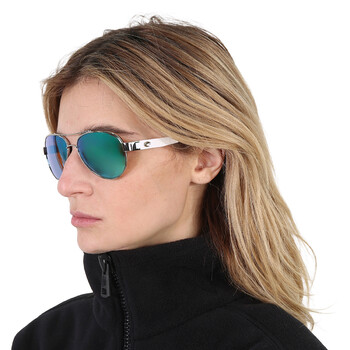 Costa Del Mar Sunglasses. Series LORETO. Series number: LR 21. Color code: OGMGLP. Shape: Pilot. Lens Width: 56 mm. Lens Height: 45.4 mm. Lens Bridge: 14 mm. Arm Length: 126 mm. 100% UV Protection. Polarized. Frame Material: Metal. Frame Color: Palladium. Lenses Type: Green Mirror Polarized Glass. Rim Style: Full-Rim. UPC/EAN code: 097963526708. Costa Del Mar LORETO Green Mirror Polarized Glass Ladies Sunglasses LR 21 OGMGLP 56.