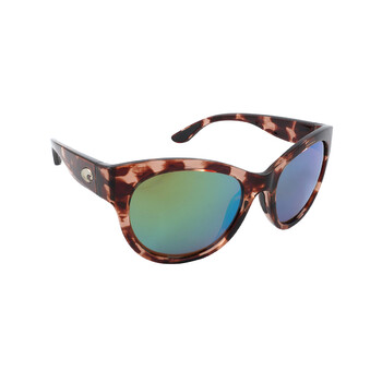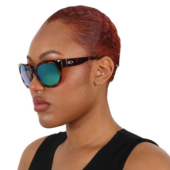 Costa Del Mar Sunglasses. Series MAYA. Series number: 6S9011. Color code: 901101. Shape: Cat Eye. Lens Width: 55 mm. Lens Height: 47.3 mm. Lens Bridge: 19 mm. Arm Length: 135 mm. 100% UV protection. Polarized. Frame Material: Bio Resin. Frame Color: Shiny Coral Tortoise. Lenses Type: Green Mirror Polarized Glass. Rim Style: Full-Rim. UPC/EAN code: 097963874342. Costa Del Mar MAYA Green Mirror Polarized Glass Cat Eye Ladies Sunglasses 6S9011 901101 55.