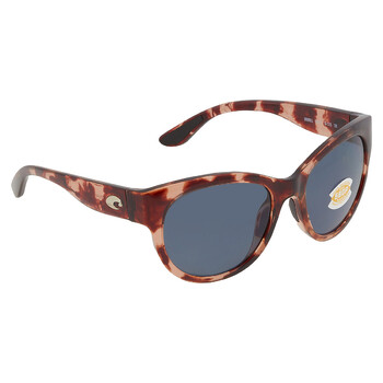 Costa Del Mar Sunglasses. Series MAYA. Series number: 6S9011. Color code: 901102. Shape: Cat Eye. Lens Width: 55 mm. Lens Height: 47.3 mm. Lens Bridge: 19 mm. Arm Length: 135 mm. 100% UV protection. Polarized. Frame Material: Bio Resin. Frame Color: Shiny Coral Tortoise. Lenses Type: Grey Polarized Polycarbonate. Rim Style: Full-Rim. UPC/EAN code: 097963874335. Costa Del Mar MAYA Grey Polarized Polycarbonate Ladies Sunglasses 6S9011 901102 55.