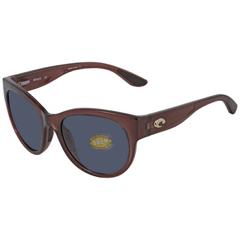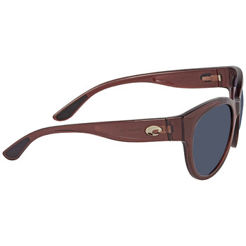 Costa Del Mar Sunglasses. Series Maya. Series number: 6S9011. Color code: 901105. Size: 55. Shape: Cat Eye. Lens Width: 55 mm. Lens Height: 47 mm. Lens Bridge: 19 mm. Arm Length: 135 mm. 100% UV protection. Polarized. Frame Material: Plastic. Frame Color: Shiny Urchin Crystal. Lenses Type: Grey Polycarbonate. Rim Style: Full-Rim. UPC/EAN code: 097963874137. Costa Del Mar Maya Grey Polycarbonate Cat Eye Ladies Sunglasses 6S9011-901105-55.