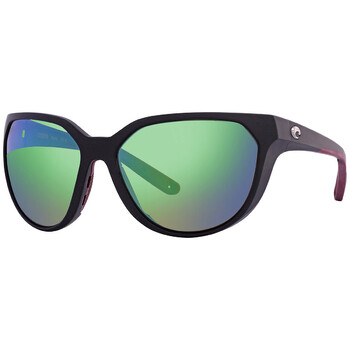 Costa Del Mar Sunglasses. Series Mayfly. Series number: 6S9110. Color code: 911002. Shape: Cat Eye. Lens Width: 58 mm. Lens Height: 46.8 mm. Lens Bridge: 15 mm. Arm Length: 123 mm. 100% UV protection. Polarized. Frame Material: bio Resin. Frame Color: Matte Black. Lenses Type: Green Mirror Polarized Glass. Rim Style: Full-Rim. UPC/EAN code: 097963955379. Costa Del Mar Mayfly Green Mirror Polarized Glass Cat Eye Ladies Sunglasses 6S9110 911002 58.