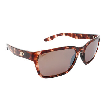 Costa Del Mar Sunglasses. Series Palmas. Series number: 6S9081. Color code: 908105. Shape: Rectangular. Lens Width: 57.4 mm. Lens Height: 39.9 mm. Lens Bridge: 17 mm. Arm Length: 135 mm. 100% UV protection. Polarized. Frame Material: Bio Resin. Frame Color: Coral Tortoise. Lenses Type: Copper Silver Mirror Polarized Polycarbonate. Rim Style: Full-Rim. UPC/EAN code: 097963939744. Costa Del Mar Palmas Copper Silver Mirror Polarized Polycarbonate Rectangular Unisex Sunglasses 6S9081 908105 57.