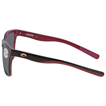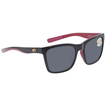 Costa Del Mar Sunglasses. Series Panga. Series number: PAG 259. Color code: OGP. Shape: Square. Lens Width: 56 mm. Lens Height: 46 mm. Lens Bridge: 20 mm. Arm Length: 135 mm. 100% UV protection. Polarized. Frame Material: Bio Resin. Frame Color: Shiny Black/Crystal/Fuchsia. Lenses Type: Grey Polarized Polycarbonate. Rim Style: Full-Rim. UPC/EAN code: 097963813099. Costa Del Mar Panga Grey Polarized Polycarbonate Ladies Sunglasses PAG 259 OGP 56.