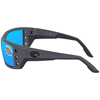 Costa Del Mar Sunglasses. Series PERMIT. Series number: PT 98. Color code: OBMGLP. Size: 61.7. Shape: Rectangular. Lens Width: 62.6 mm. Lens Height: 40.5 mm. Lens Bridge: 16 mm. Arm Length: 125 mm. 100% UV protection. Polarized. Frame Material: Bio Resin. Frame Color: Matte Gray. Lenses Type: Blue Mirror Polarized Glass. Rim Style: Full-Rim. UPC/EAN code: 097963555661. Costa Del Mar PERMIT Blue Mirror Polarized Glass Men's Sunglasses PT 98 OBMGLP 62.