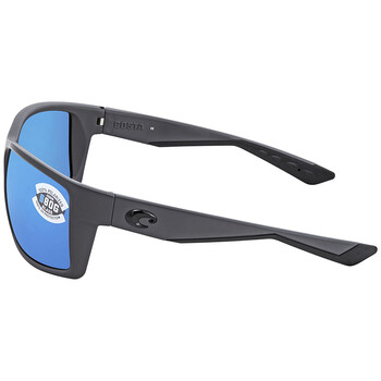Costa Del Mar Sunglasses. Series REEFTON. Series number: RFT 98. Color code: OBMGLP. Shape: Rectangular. Lens Width: 63.5 mm. Lens Height: 43.1 mm. Lens Bridge: 15 mm. Arm Length: 115 mm. 100% UV Protection. Polarized. Frame Material: Bio Resin. Frame Color: Matte Grey. Lenses Type: Blue Mirror Polarized Glass. Rim Style: Full-Rim. UPC/EAN code: 097963555821. Costa Del Mar REEFTON Blue Mirror Polarized Glass Men's Sunglasses RFT 98 OBMGLP 64.