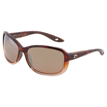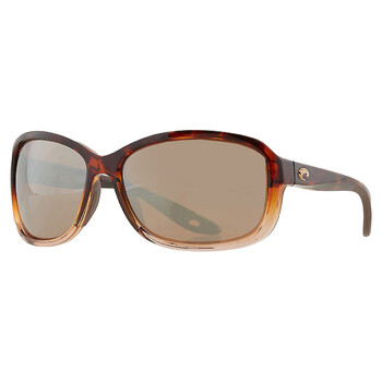 Costa Del Mar Sunglasses. Series SEADRIFT. Series number: 6S9114. Color code: 911403. Shape: Rectangular. Lens Width: 60 mm. Lens Height: 44 mm. Lens Bridge: 15 mm. Arm Length: 123 mm. 100% UV protection. Polarized. Frame Material: Bio Resin. Frame Color: Shiny Tortoise Fade. Lenses Type: Copper SIlver Mirror Polarized Glass. Rim Style: Full-Rim. UPC/EAN code: 097963967419. Costa Del Mar SEADRIFT Copper SIlver Mirror Polarized Glass Rectangular Ladies Sunglasses 6S9114 911403 60.