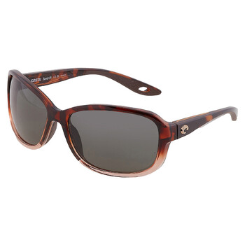 Costa Del Mar Sunglasses. Series Seadrift. Series number: 6S9114. Color code: 911404. Shape: Rectangular. Lens Width: 58 mm. Lens Height: 42 mm. Lens Bridge: 15 mm. Arm Length: 123 mm. 100% UV protection. Polarized. Frame Material: Bio Resin. Frame Color: Shiny Tortoise Fade. Lenses Type: Grey Polarized Glass. Rim Style: Full-Rim. UPC/EAN code: 097963967426. Costa Del Mar Seadrift Grey Polarized Glass Rectangular Ladies Sunglasses 6S9114 911404 58.