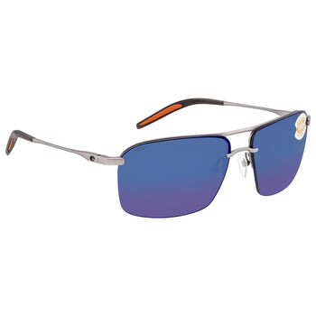 Costa Del Mar Sunglasses. Series SKIMMER. Series number: SKM 228. Color code: OBMP. Shape: Rectangular. Lens Width: 62 mm. Lens Height: 45 mm. Lens Bridge: 14 mm. Arm Length: 128 mm. 100% UV Protection. Polarized. Frame Material: Metal. Frame Color: Matte Silver. Lenses Type: Blue Mirror Polarized Polycarbonate. Rim Style: Semi-Rimless. UPC/EAN code: 097963809153. Costa Del Mar SKIMMER Blue Mirror Polarized Polycarbonate Men's Sunglasses SKM 228 OBMP 62.