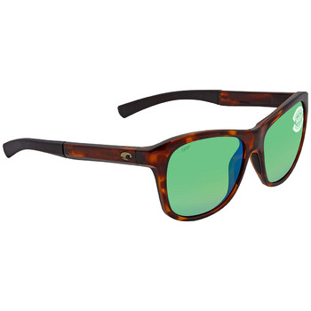 Costa Del Mar Sunglasses. Series Vela. Series number: VLA 10. Color code: OGMP. Shape: Pillow. Lens Width: 56 mm. Lens Height: 46.1 mm. Lens Bridge: 15 mm. Arm Length: 131 mm. 100% UV protection. Polarized. Frame Material: Bio Resin. Frame Color: Tortoise. Lenses Type: Green Mirror Polarized Polycarbonate. Rim Style: Full-Rim. UPC/EAN code: 097963838252. Costa Del Mar Vela Green Mirror Polarized Polycarbonate Unisex Sunglasses VLA 10 OGMP 56.