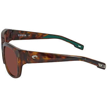 Costa Del Mar Sunglasses. Series Waterwoman. Series number: WTW 250. Color code: OCP. Shape: Cat Eye. Lens Width: 54.6 mm. Lens Height: 44.7 mm. Lens Bridge: 18 mm. Arm Length: 132 mm. 100% UV protection. Polarized. Frame Material: Bio Resin. Frame Color: Shiny Palm Tortoise. Lenses Type: Copper Polarized Polycarbonate. Rim Style: Full-Rim. UPC/EAN code: 097963812740. Costa Del Mar Waterwoman Copper Polarized Polycarbonate Cat Eye Ladies Sunglasses WTW 250 OCP 55.