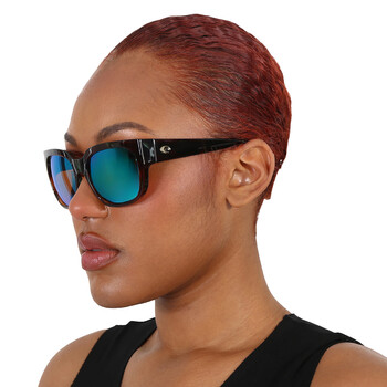 Costa Del Mar Sunglasses. Series WATERWOMAN. Series number: WTW 250. Color code: OGMP. Shape: Square. Lens Width: 54.6 mm. Lens Height: 44.7 mm. Lens Bridge: 18 mm. Arm Length: 132 mm. 100% UV Protection. Polarized. Frame Material: Bio Resin. Frame Color: Shiny Palm Tortoise. Lenses Type: Green Mirror Polarized Polycarbonate. Rim Style: Full-Rim. UPC/EAN code: 097963812757. Costa Del Mar WATERWOMAN Green Mirror Polarized Polycarbonate Ladies Sunglasses WTW 250 OGMP 55.
