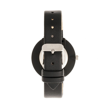 Black alloy case with a black leatherette strap. Fixed black alloy bezel. Black dial with silver-tone hands. Dial Type: Analog. Quartz movement. Scratch resistant mineral crystal. Pull / push crown. Solid case back. Round case shape, case size: 37 mm, case thickness: 8 mm. Band width: 11 mm. Buckle clasp. Water resistant at 30 meters / 100 feet. Functions: hour, minute, second. Casual watch style. Watch label: Japan Movt. Crayo Blade Quartz Black Dial Watch CRACR5402.