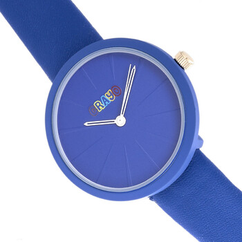 Blue alloy case with a blue leatherette strap. Fixed blue alloy bezel. Blue dial with silver-tone hands and index hour markers. Dial Type: Analog. Quartz movement. Scratch resistant mineral crystal. Pull / push crown. Solid case back. Round case shape. Case size: 37 mm. Case thickness: 8 mm. Band width: 11 mm. Tang clasp. Water resistant at 30 meters / 100 feet. Functions: hour, minute, second. Blade Series. Casual watch style. Watch label: Japan Movt. Crayo Blade Quartz Blue Dial Watch CRACR5404.