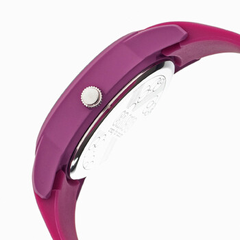 Fushia rubber-coated metal case with a fushia silicone strap. Fixed fushia rubber-coated metal bezel. Fushia dial with luminous green and red hands and multi-colored (3D raised) Arabic numeral hour markers. Arabic numeral minute markers (at 5 minute intervals). Minute markers around an inner ring. Dial Type: Analog. Luminescent hands and markers. Date display at the 3 o'clock position. Quartz movement. Scratch resistant mineral crystal. Pull / push crown. Solid case back. Case diameter: 41 mm. Case thickness: 11 mm. Round case shape. Band width: 17 mm. Tang clasp. Water resistant at 20 meters / 66 feet. Functions: date, hour, minute, second. Casual watch style. Crayo Festival Fushia Dial Fushia Silicone Unisex Watch CR2005.