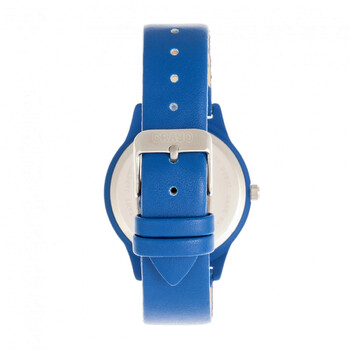 Blue alloy case with a blue leatherette strap. Fixed blue alloy bezel. Blue dial with red hands. Dial Type: Analog. Quartz movement. Scratch resistant mineral crystal. Pull / push crown. Solid case back. Round case shape, case size: 38 mm, case thickness: 8 mm. Band width: 18 mm. Buckle clasp. Water resistant at 30 meters / 100 feet. Functions: hour, minute, second. Casual watch style. Watch label: Japan Movt. Crayo Splat Quartz Blue Dial Watch CRACR5306.