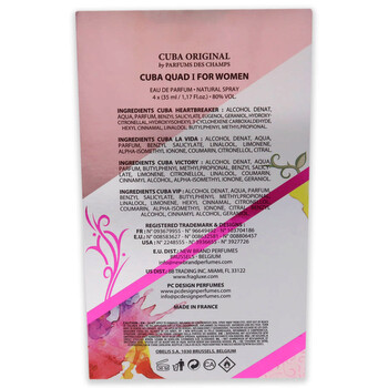 Presented in a 4-ounce gift set, Cuba Quad I by Cuba is perfect for the woman who appreciates the finer things in life. This ladies' fragrance not only smells divine, but it is also a stylish addition to any perfume collection. The barcode of this product is 5425039221090.