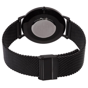 Black stainless steel case with a black stainless steel mesh bracelet. Fixed bezel. Black dial with black hands and index hour markers. Minute markers around the outer rim. Dial Type: Analog. Quartz movement. Pull / push crown. Solid case back. Round case shape, case size: 40 mm. Band width: 20 mm. Sliding clasp. Water resistant at 30 meters / 100 feet. Functions: hour, minute. Classic Mesh Onyx Series. Casual watch style. Watch label: Japan Movt. Daniel Wellington Classic Mesh Onyx Quartz Black Dial Men's Watch DW00100632.